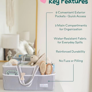 Elevate your baby care routine and make diaper changes a breeze. Perfect for diapers, wipes, creams, burp cloths, and more, this organizer grows with your baby and adapts to your changing needs.