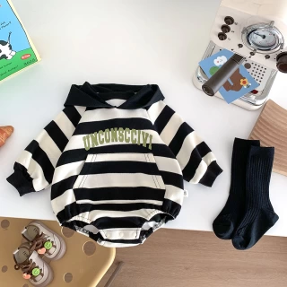 Enhance your baby's style quotient with sophisticated stripes, while fostering a love for learning through playful alphabet letters. Perfect fit for heights and weights ranging from 3.5kg to 14kg.
