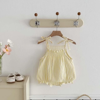 Embrace the essence of sophisticated style for your little treasure this summer. Introducing our exquisite striped suspenders jumpsuit, a timeless piece designed to blend comfort and fashion for effortless outings with your cherished one.