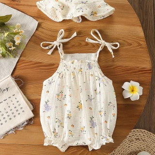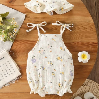 Indulge in Elegance: Unveil the Charm of Our Ditsy Floral Romper and Hat Set