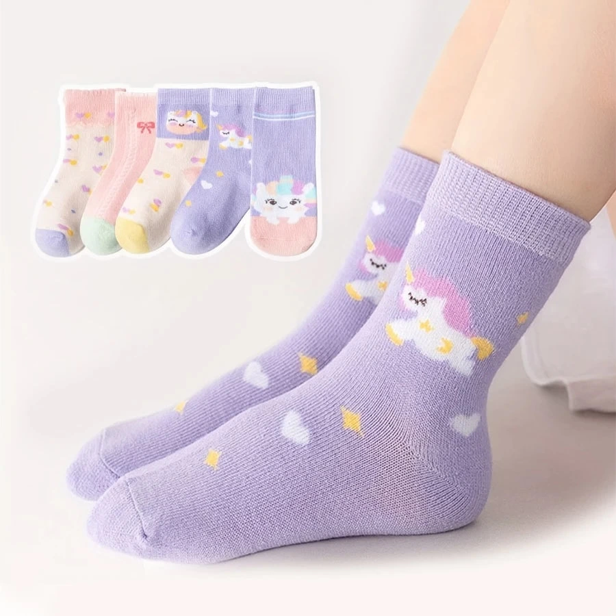 Cute mid-calf socks designed for babies and kids.Comfortable for daily wear with a playful unicorn style.
